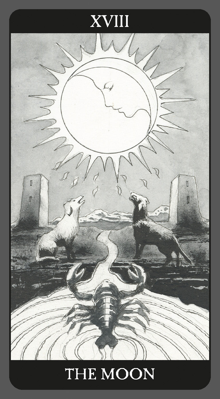 The art of Corrado Roi wants to welcome everyone to the Dark Side of Tarot. Faithful to the Tarot by A. E. Waite and P. C. Smith, this deck opens to the Shadow Work and to the – sometimes spooky, always revealing – readings that reach deep into the subconscious. As in the Moon card, new emotions and feelings rise from the subconscious, bringing an – otherwise unreachable – state of clarity. Sasha Graham, art by Corrado Roi, 78 cards, 66×120 mm. IInstructions. Multilingual edition.