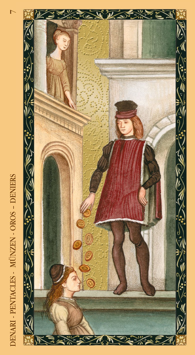After more than five hundred years, one of the most fascinating and mysterious decks has been completed and re-proposed, thanks to a careful and in-depth historical research that has made it a truly valuable work.All the papers are colored in tempera and enriched with gold foil impressions.