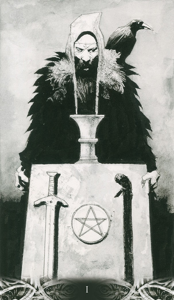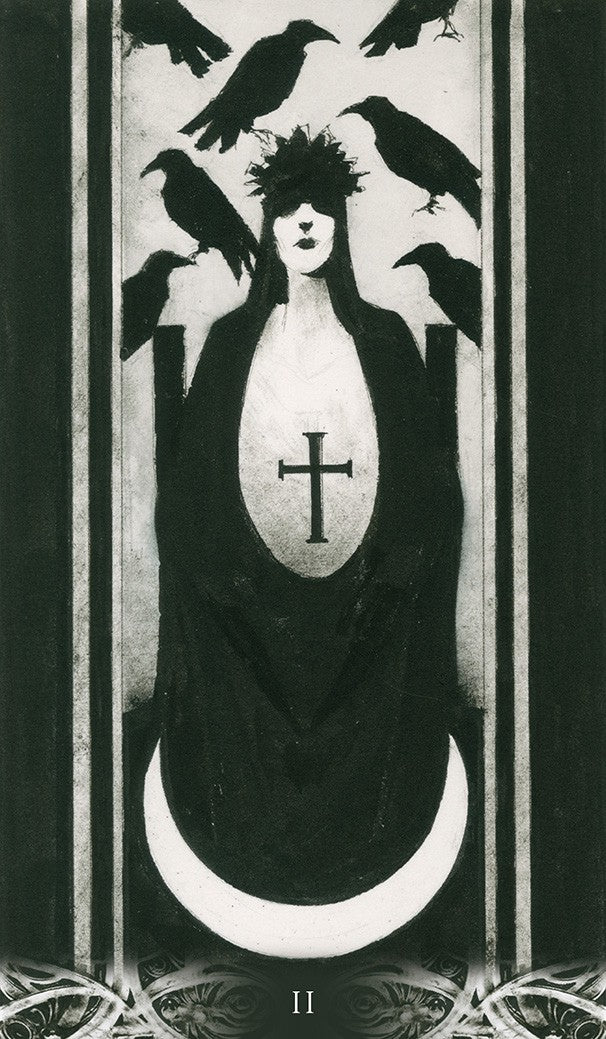 “Finally the crow arrives.” A bearer of omens, a messenger, a guardian and a scavenger: the crow has no master. This gothic deck of black cards infuses the Tarot with fear and anguish as never before.A Tarot deck to be read with the soul.  Art by Corrado Roi,78 cards, 70×120 mm.Instructions. Multilingual edition.