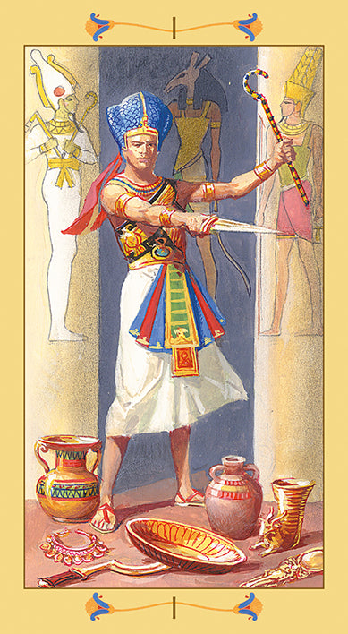Evolution and completion of the numerous and fascinating Egyptian-inspired decks, the Ramses Tarot abandons the symbolic alphabet to propose a classic, meticulous reproduction of immediate reading through the rituals and esoteric formulas used by the greatest and most famous King of ancient Egypt.Giordano Berti, art by Severino Baraldi, 78 cards, 66x120mm;Instructions. Multilingual edition.