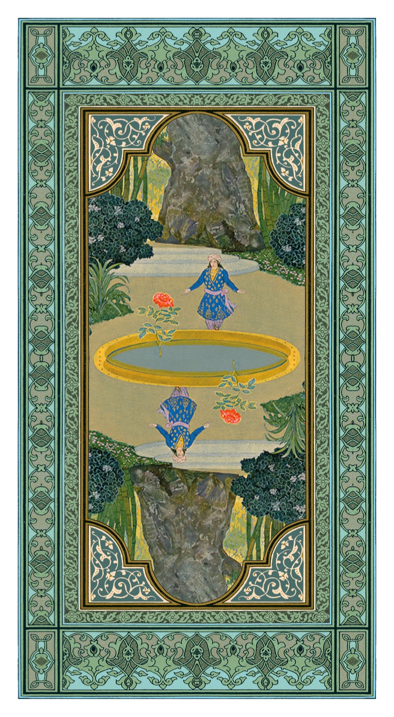 Intertwined images of fairytales and stories. Symbols that carry the scent of distant lands, of incense and spices. The sigh of the Orient winds through the arabesques of the Thousand and One Nights, between palaces of precious stones, deserts and enchanted cities, between princes and beggars. Night after night, card after card.