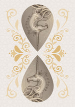 Paolo Barbieri has come up with a unique and impromptu vision of Unicorns, transcending the stereotype of fairytale unicorns to bring such noble animals into the elite of Fantasy. An Oracle that can be used for divination as well as inspirational cards.Art by Paolo Barbieri, 34 cards, 88×125 mm. Instructions. Multilingual edition.