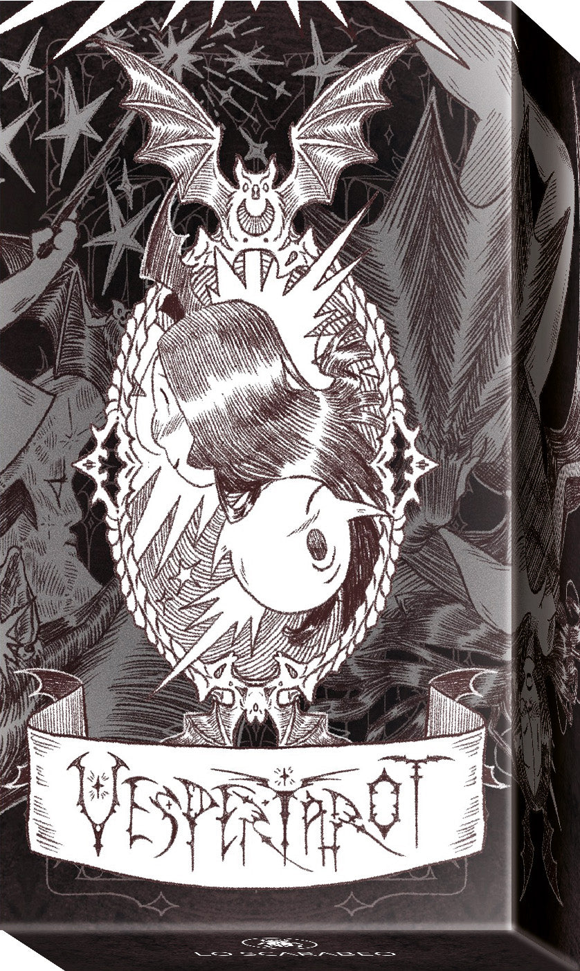 This Tarot tells the story of Vespertiliu, the half-human-half-bat protagonist who sets off for an amazing adventure with Macigian, a little sorceress who will guide her along the magical journey through the Arcana. This exclusive narrative deck is the latest addition to theHorizons line of Lo Scarabeo, offering new, stunning black-and-white art with an original pencil-style linework, and a reading experience in every sense of the term. Available in a limited edition of 4,000 copies.